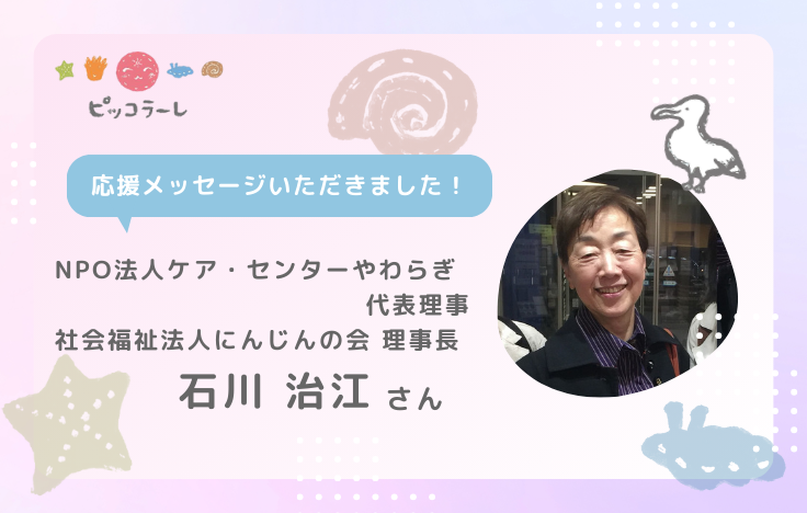 本日は、NPO法人ケア・センターやわらぎ 代表理事、社会福祉法人にんじんの会理事長の石川治江さんからいただいた応援メッセージをご紹介します🍀