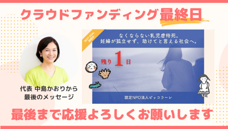 11月1日にスタートした私たちのクラウドファンディング「『誰にも頼れない』妊娠をなくしたい。相談から途切れない支援を一緒に」というプロジェクトが、とうとう最終日を迎えました。
