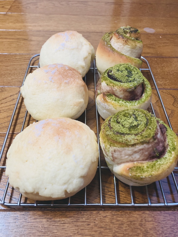 今日はメロンパンと創作であんこロールを作ってみましたよー