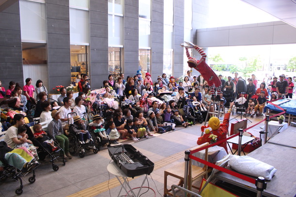 お母さんたちが地域の方々と繋がる会『地域で医療的ケアが必要な子どもたちを支えよう』を今年も開催することができました。今年は昨年よりもさらにパワーアップし、行政や訪問看護ステーション、お母さんたちの団体の皆さんも参加してくださいました。さらに今年も大道芸人さんが会場でパフォーマンスを披露してくださいました!