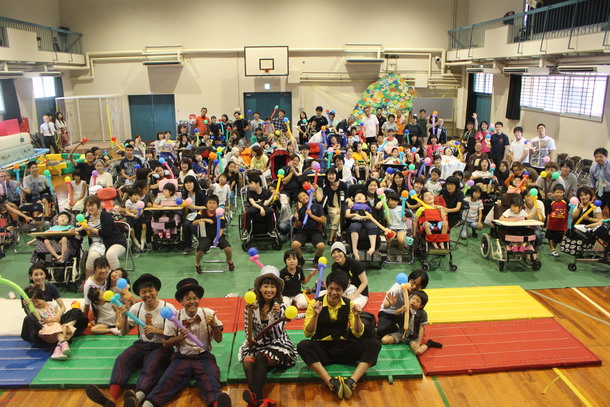 今回は福山市の特別支援学校に大道芸をお届けしました!お母さんたちからは「大道芸を見たことがない医療的ケア児の子どもたちにどうしても1度大道芸を見てもらい、楽しさを知ってほしい」とお話をいただきました。