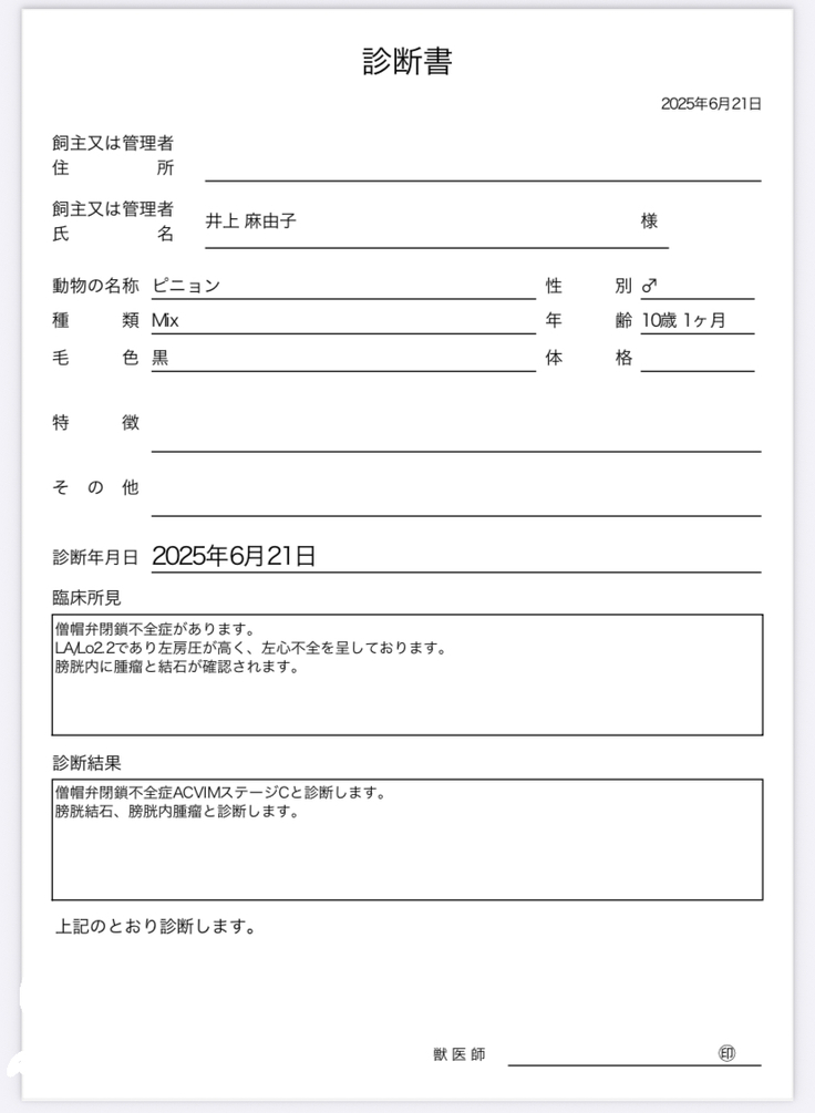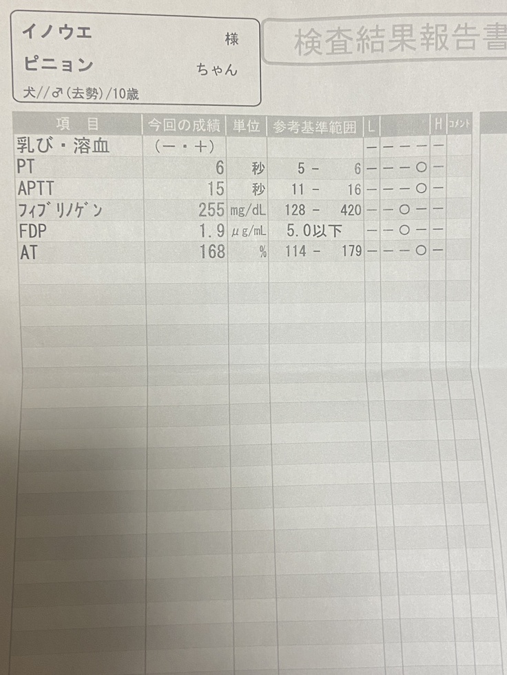 血液凝固検査結果の紙については性別が違うことに気づいていたのですが、診断書も♀表記になっていることに全く気付いていませんでした💦