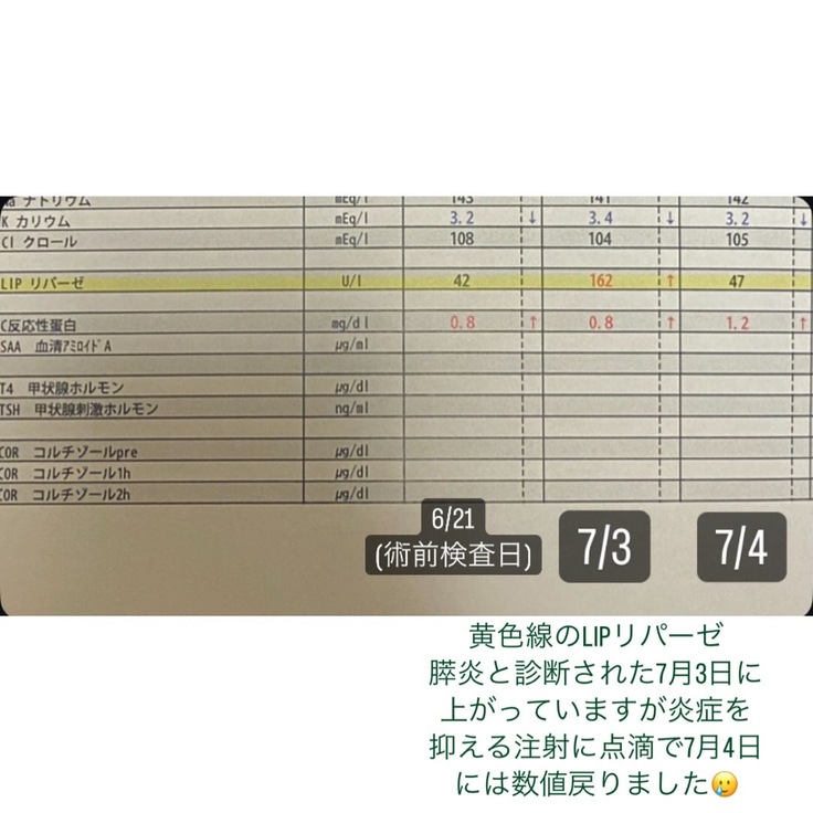 7月3日、💩がピーピーだったため病院に連れていったところ、膵炎と診断されました。
