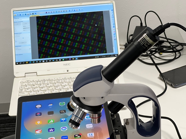 ・ディスプレイを顕微鏡でズームインする実験
