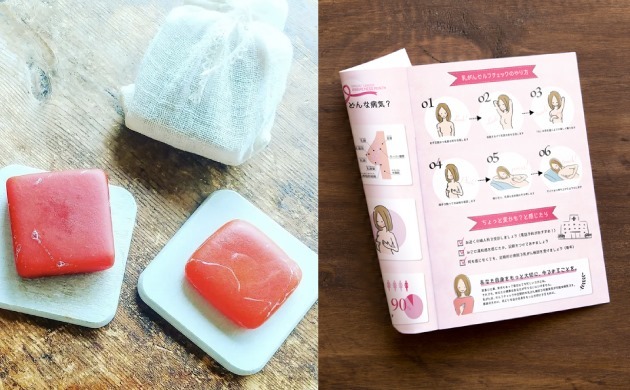 糠と葉山ビーツの無添加石けん1個+乳がんセルフチェックパンフレット。