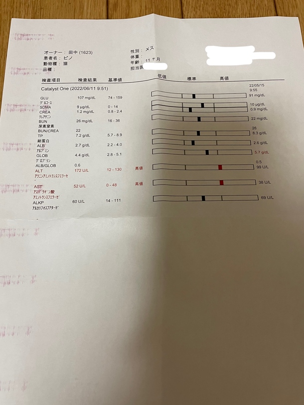 獣医さん曰くこれは大丈夫との事でした。次回の検査では正常値になっているといいなと思います。