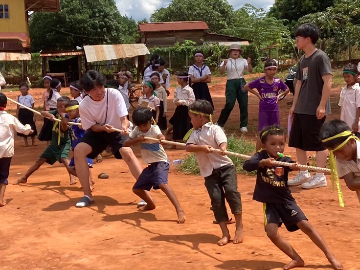 ウォーターフェスティバルはシャボン玉や水鉄砲を使った企画を運動会では前回の渡航に引き続き徒競走や綱引き、二人三脚を行い子供たちの元気やパワーに圧倒されながらもたくさんの笑顔であふれた空間でした。一緒に体を動かしたり、こちらの考えをくみ取って手伝ってくれたりと言葉が通じなくても、計画通りにできなくても心を通わせ一緒に楽しむことができるのだと今回の渡航で学ぶことができました。