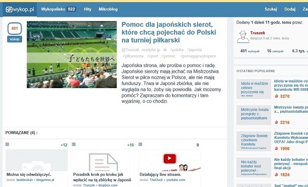 支援者様のご尽力で、ポーランドのWykopというポータルサイトでクラウドファンディング「養護施設の子どもたちをポーランドのサッカーワールドカップへ!」が紹介されました!