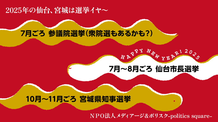 2025年は、参議院議員通常選挙、仙台市長選挙、宮城県知事選挙など、予定されているだけでも数多くの選挙があり、メディアージとしても、この機会に政治や行政のこと、社会のことを考える機会をつくっていきたいと考えています。
