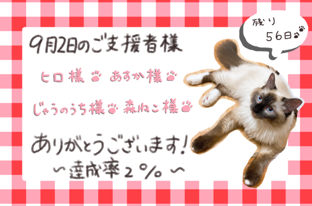 4名の方からのご支援を受けさせていただきました、本当にありがとうございます!