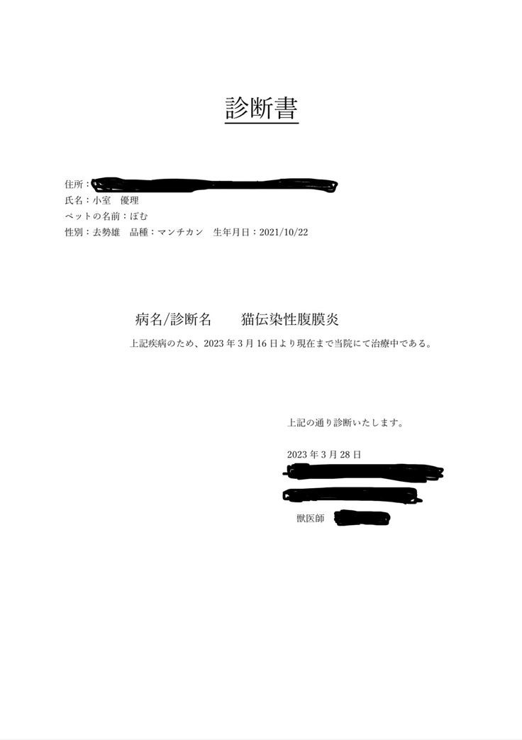 FIPの寛解を目指し、ご支援賜りました皆さまの大切なお金は、全てぽむの治療費に充てさせて頂きます。