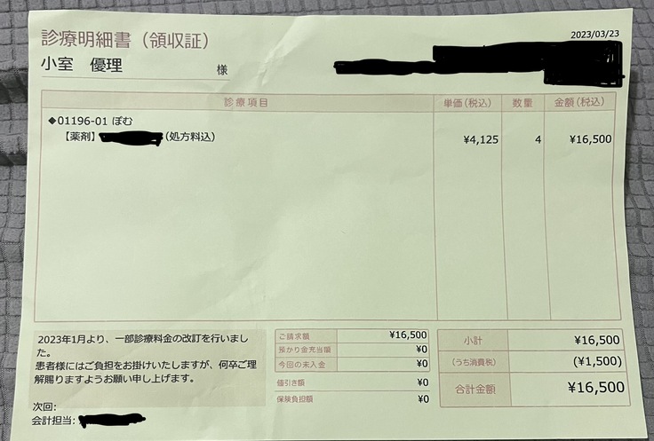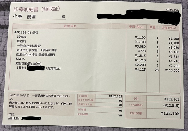 今のお薬の量で3ヶ月分の薬代を計算すると、