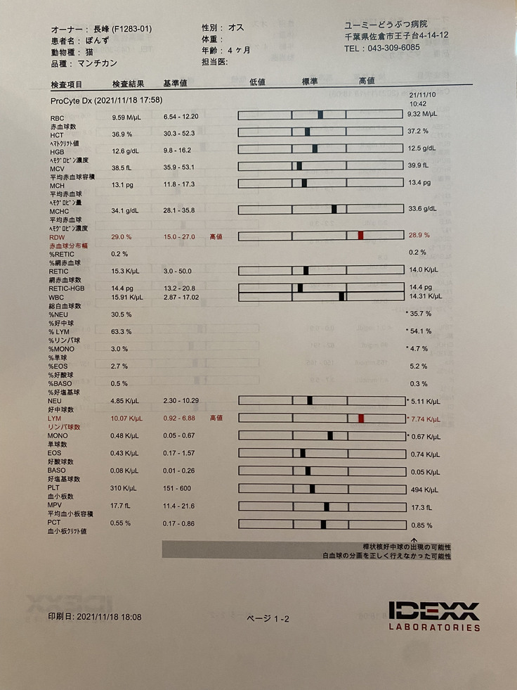 まず前回受診日(11/18)の血液検査結果をいただきました。