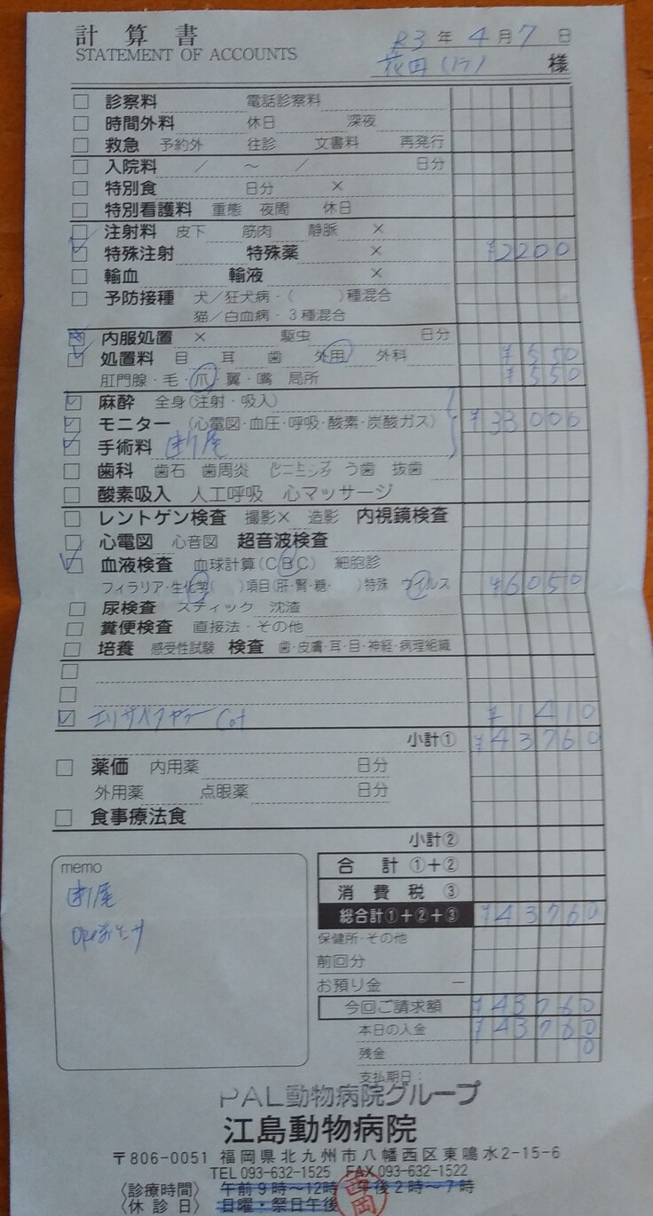 また病院へ行きましたら随時、計算書など掲載いたします。