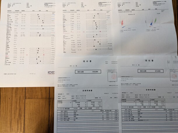 血液検査、尿検査、エコー検査としていただきましたが、どれも特に心配するような異常は見られないとのことで、一安心しました。