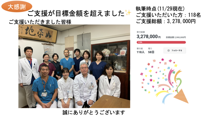 118名もの方にご支援いただきまして、誠にありがとうございます。
