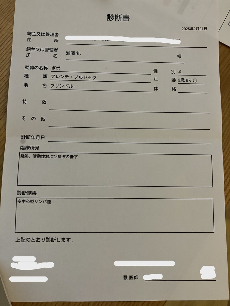 脳腫瘍に加えて、多中心型リンパ腫が発覚したためです。