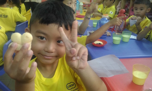 今日は、公益財団法人CIESF様の運営する幼稚園、CIESF リーダーズアカデミー(http://www.ciesf.org/activities/consistency/)にて、年中さんクラスのお子さん(4~6歳)27名に、PoPok蒸しケーキを試食してもらいました。