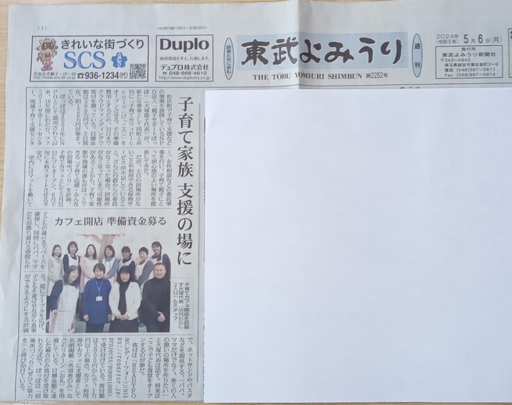 今回は、東武よみうり新聞5月6日(月)号にぽっぽの記事を載せていただきました!