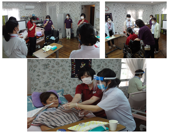 「地域に食べるよろこびを拡げたい」と、リタイアした看護師Y様から支援をいただき、東広島市のB訪問看護ステーションスタッフを対象に研修会を開催しました。7月からは新規に作成した新型コロナウイルス感染対策用基本スキルを用い(POTTプロジェクトホームページで公開中)、3密を避け消毒液、マスク、フェイスシールド等を準備し、少人数で開催しました。参加者のやる気と元気は、スタッフからスタッフ、そして地域へと拡がる予感がしました。