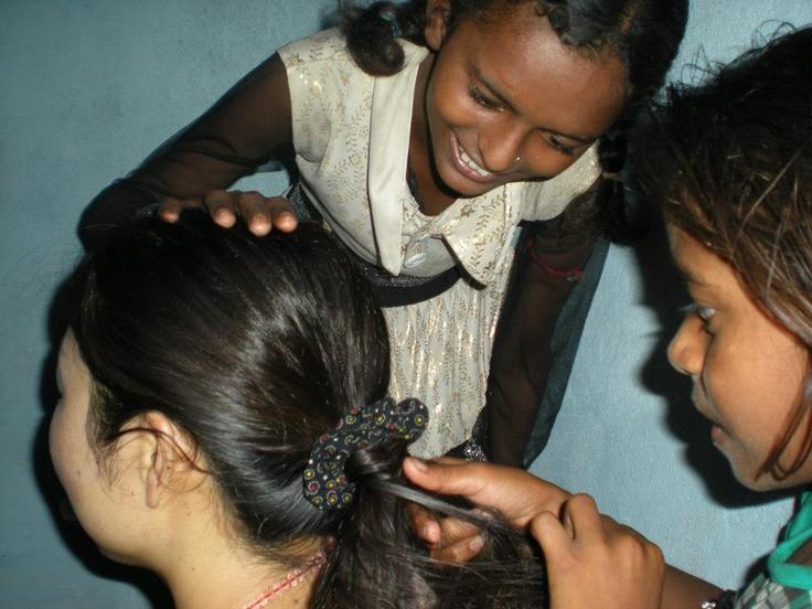 そのような過酷な環境でも子どもたちはとても元気で、楽しそうに勉強をしていました。どの子もやはりキラキラとした瞳で素晴らしい笑顔でした。言葉が通じなくても積極的に話しかけてくれ、髪の毛を結わいてくれたり、歌を歌ってくれたり、勉強をしている本やノートを得意げに見せてくれるのが愛らしかったです。