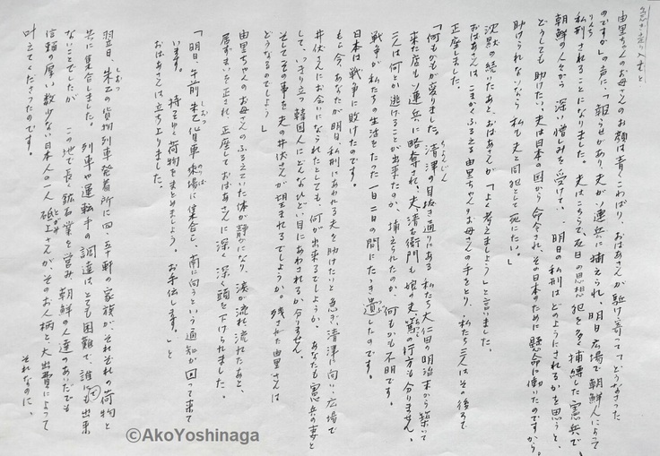 史実を正確に伝えるというよりむしろ、当時の普通の人々が戦争に巻き込まれていく様や、死と隣りあわせで生きた人々の思いを追体験して感じ取ってもらえるものがあれば幸いと、願っています。