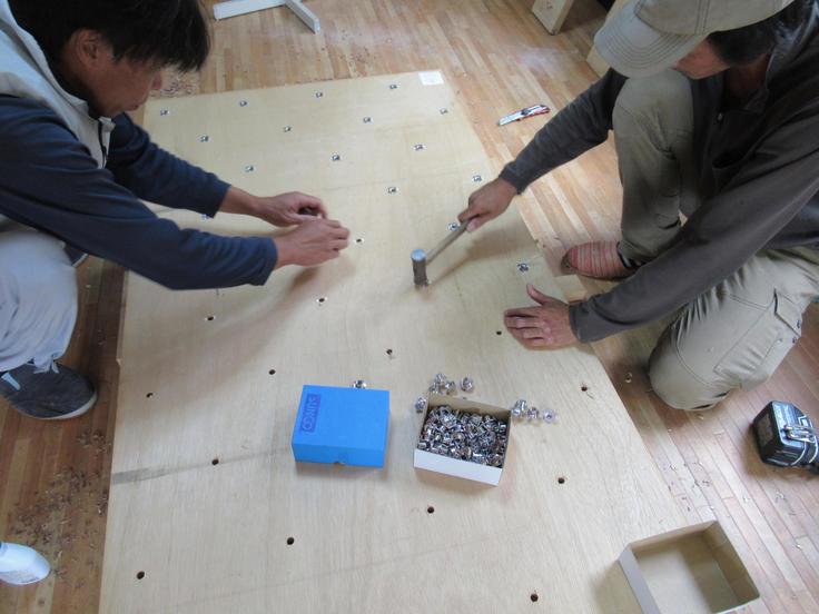 今回のプロジェクトの一つであるプレイルームに設置予定のボルタリングパネルの作成が始まりました!
