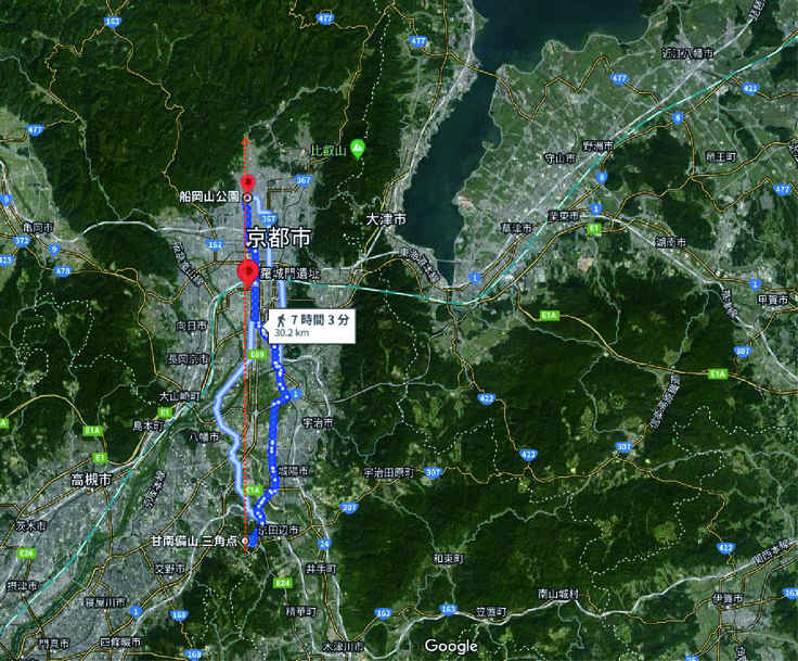 右奥、北東にみえるのが比叡山でした。比叡山そして八幡の方に向かって北上する木津川が見えました。昔は大きな川であり、大阪などへ材木がさかんに送られていました。