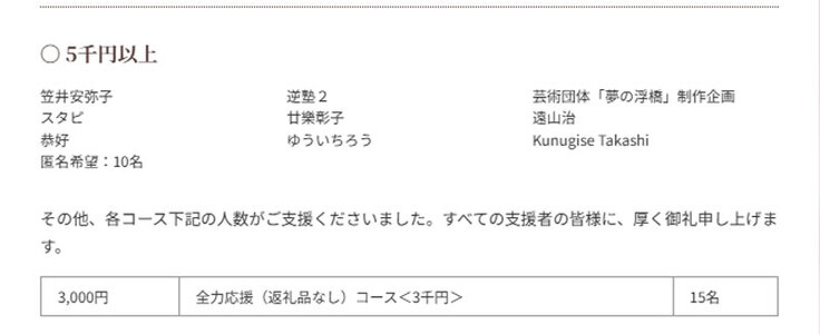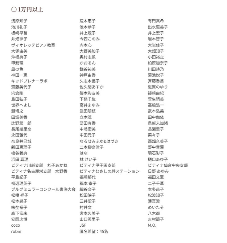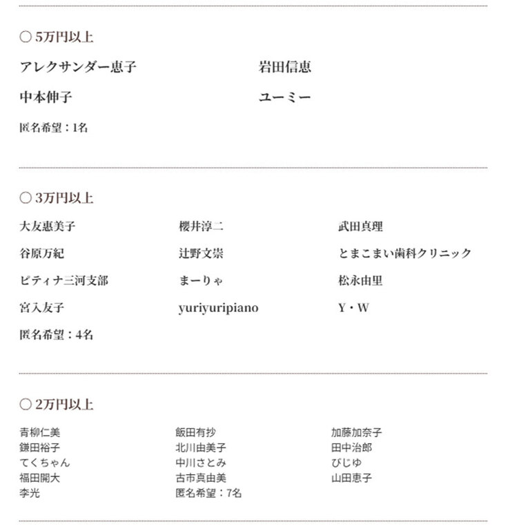 ご支援いただきました皆様お一人おひとりに心からの感謝をお伝えしたいと思います。