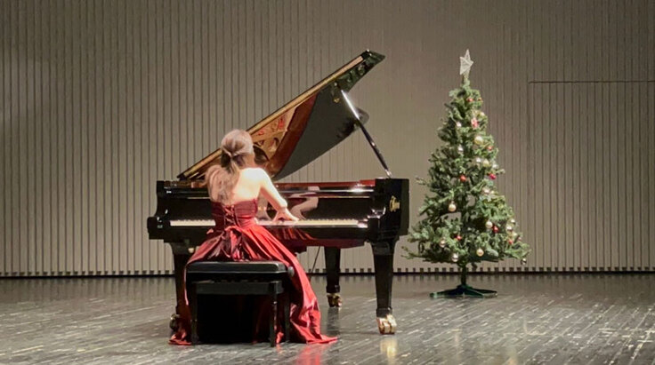 初めて訪れた長野県茅野市。舞台には素敵なクリスマスツリーが飾られ、温かい雰囲気の中、KAWAIの素晴らしいピアノで演奏させていただきました。