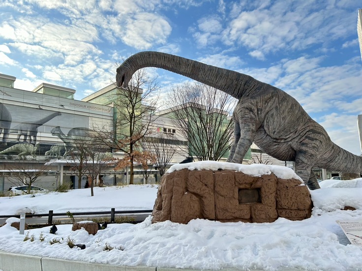 2月の愛媛から福井への移動が大変でした。2/23、24と2日連続で本番があって、愛媛公演の翌朝に福井へ向かう予定だったのですが、その日の朝、愛媛で雪が降りまして……。朝5時にホテルを出発したのですが、朝早すぎて空港が開くのを雪の中30分くらい待ったり、乗継便が1時間遅れたりして、本番に間に合うのかヒヤヒヤしながら向かったのですが、福井に降り立った瞬間に広がる幻想的な雪景色や恐竜たちに迎えられ、無事にたどり着くことができました。