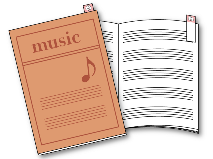 そんなみなさんのために、楽譜の上からぴてぃにゃんとぴぃ先生の顔がかわいくのぞくデザインにしてみました♪
