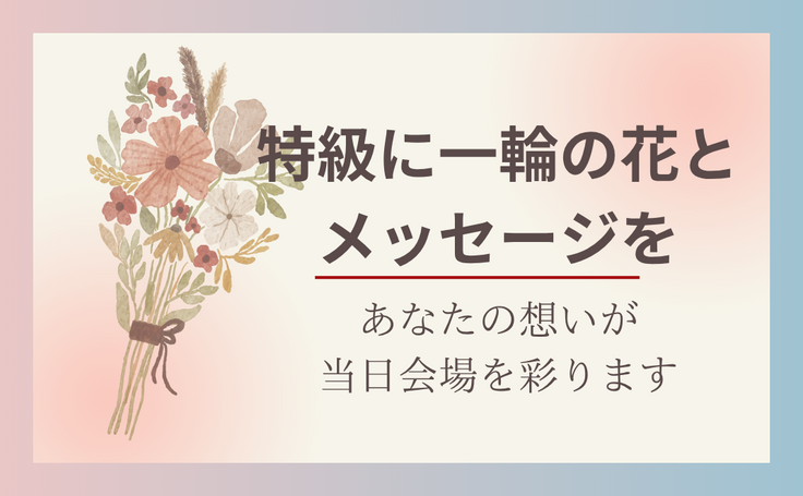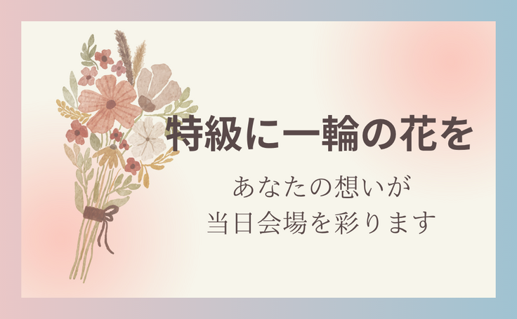 ▼「特級に一輪の花とメッセージを~あなたの想いが当日会場を彩ります」コースでのご支援