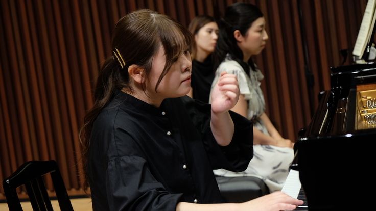 ファイナルで演奏予定のピアノコンチェルトを、ピアニストの伴奏で2台ピアノで披露しました。
