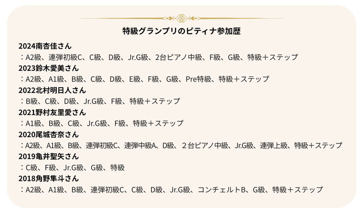 近年の特級グランプリたちのピティナ参加歴だけを見ても、それが分かります。