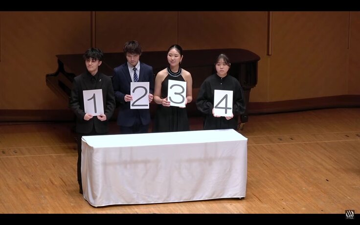 続けて恒例のファイナル演奏順決め。1人ずつシャッフルされた番号札の前に並び、一斉に掲げました。