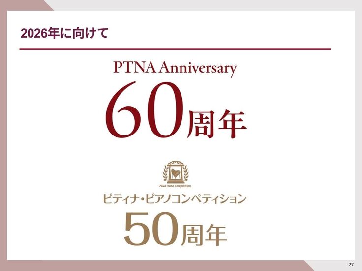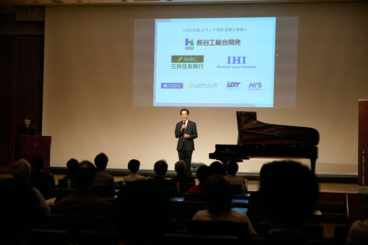 ピティナ専務理事福田成康からは、こうした若い才能が世界に出ていくため、そして全国各地に未来への種を蒔くためには、「音楽業界」以外の方々からも関心を持っていただき、ともに音楽文化を創っていくことが大切だと考えていること、そしてピティナ創立60周年、コンペティション50周年を迎える2026年に向けての抱負が語られました。