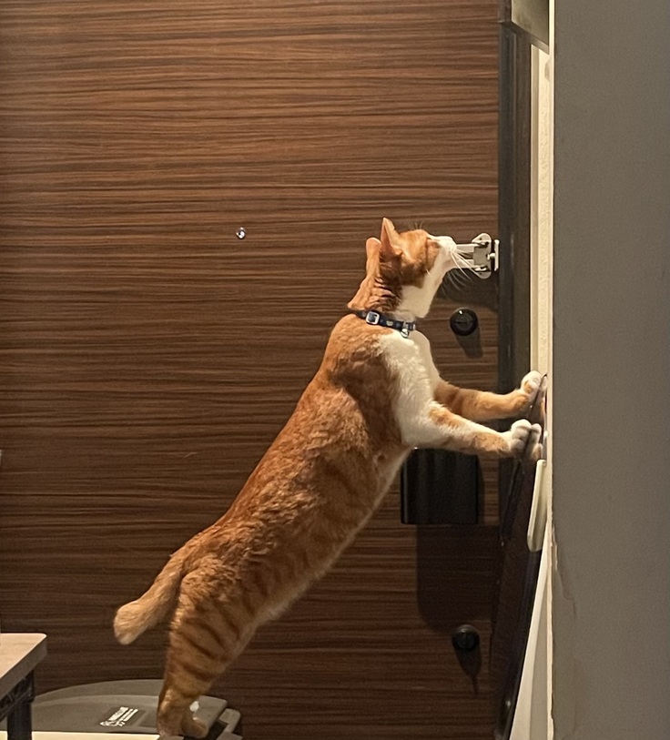 部屋に居ないな?と思ったらだいたい洗濯機の上で座っています。今日はぷちが洗濯機に登る瞬間を激写しました。