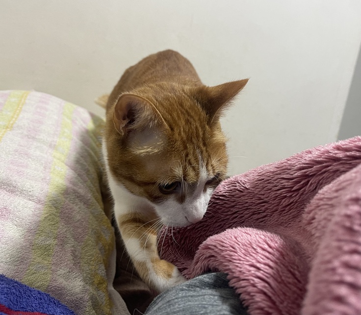 ↑画像は私が布団に潜っているところ、「布団に一緒に入れろ」と手でちょんちょんと毛布をめくろうとしてくるぷちです。毎日こうして布団に潜り込んでくるので一緒に寝ています。こんな穏やかな日々がずっと続きますように…。