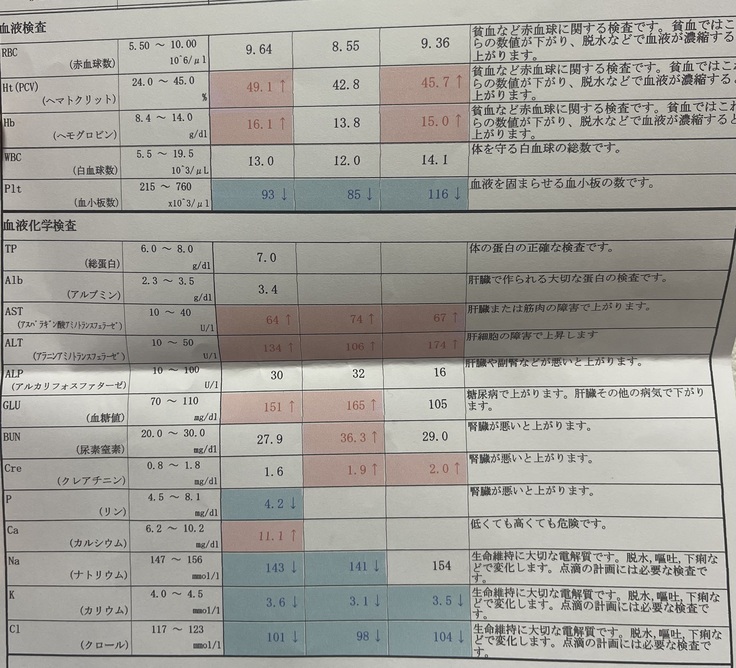 血液が濃いらしく、少し高めに出ている?らしいのですが、概ね良好とのことです。