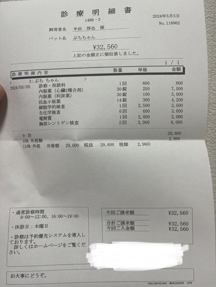 今回は血液検査とレントゲン撮影をしてきました。