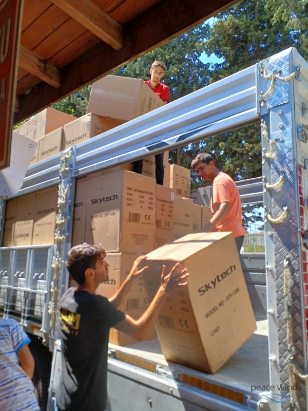 WMO(世界気象機関)は7月の世界の月平均気温が過去の平均を大幅に上回り、2023年の夏が史上最も暑い夏だったと発表しました。この暑さは、2月にトルコ南東部を襲ったふたつの巨大地震の被害を受けて、テントやコンテナハウスで仮住まいをする被災者にとっても過酷なものでした。被災した方々の生活が少しでも楽になるように、ピースウィンズは被害の最も大きかったトルコ南部ハタイ県の5つの村(タニシュマ村、マデンボユ村、アウスユ村、ボズホユック村、デミルキョプル村)で、「夏対策」物資を合計2,942世帯にお届けしました。