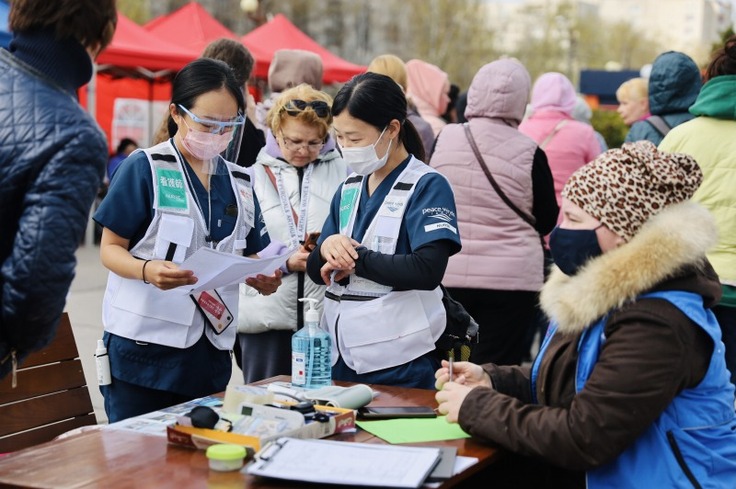 モルドバの仮設診療所での医師・看護師などメディカルチームによる医療支援