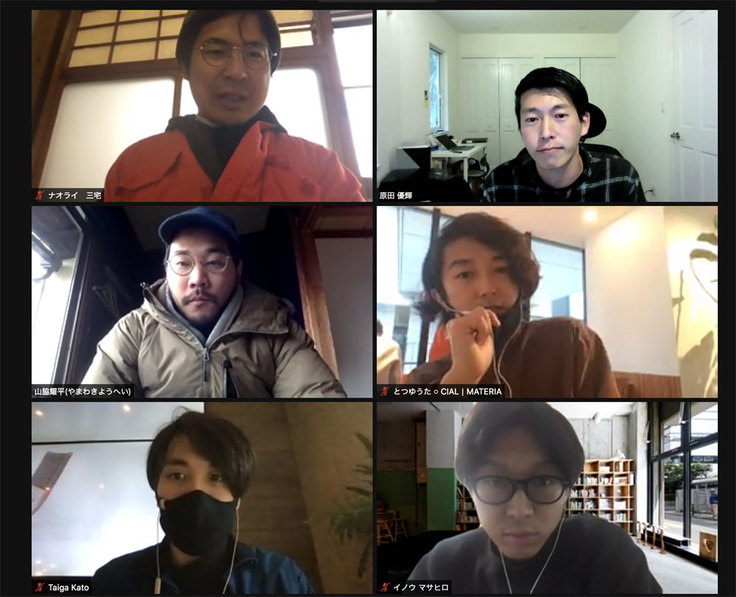 デニム産業の集積地である岡山・児島を拠点とするデニムブランド・ITONAMI(旧EVERY DENIM)の共同代表・山脇耀平さん、出身地・広島を拠点に、日本酒酒蔵を未来につなぐための事業を展開するナオライの創業者・三宅 紘一郎さん、企業やブランドのアイデンティティデザインと、コーヒーブランド「MATERIA」の運営を並行して行うCIALの戸塚佑太さん、加藤大雅さんの3組です。