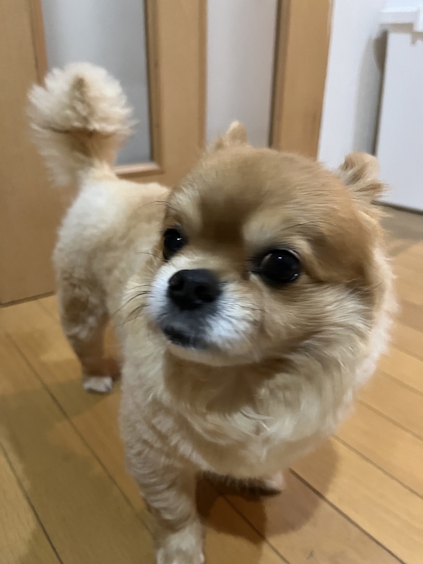 ポメチワのくーはカットしなければ、フサフサヘアーになりますが、私が勝手にカットしてしまうので、全体の毛は落ち着いてます。