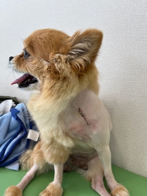 傷口を抱っこする時に手が触れてしまっても、痛がることなく抱っこされていました。