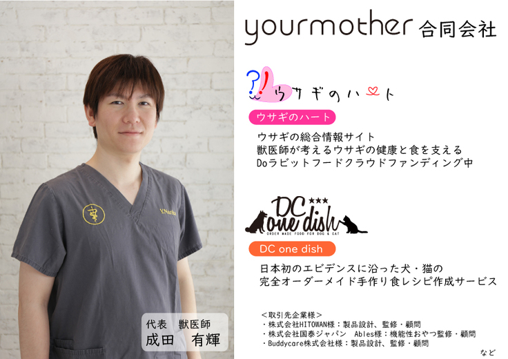 初めまして。yourmother合同会社代表 獣医師の成田です。