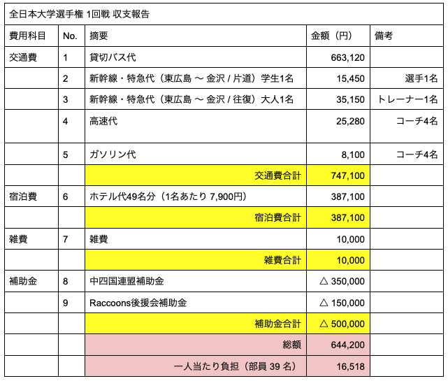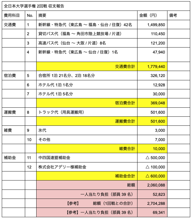 皆様からご支援いただいた資金は、すべて全日本大学選手権に対する遠征資金として使用させていただきます。