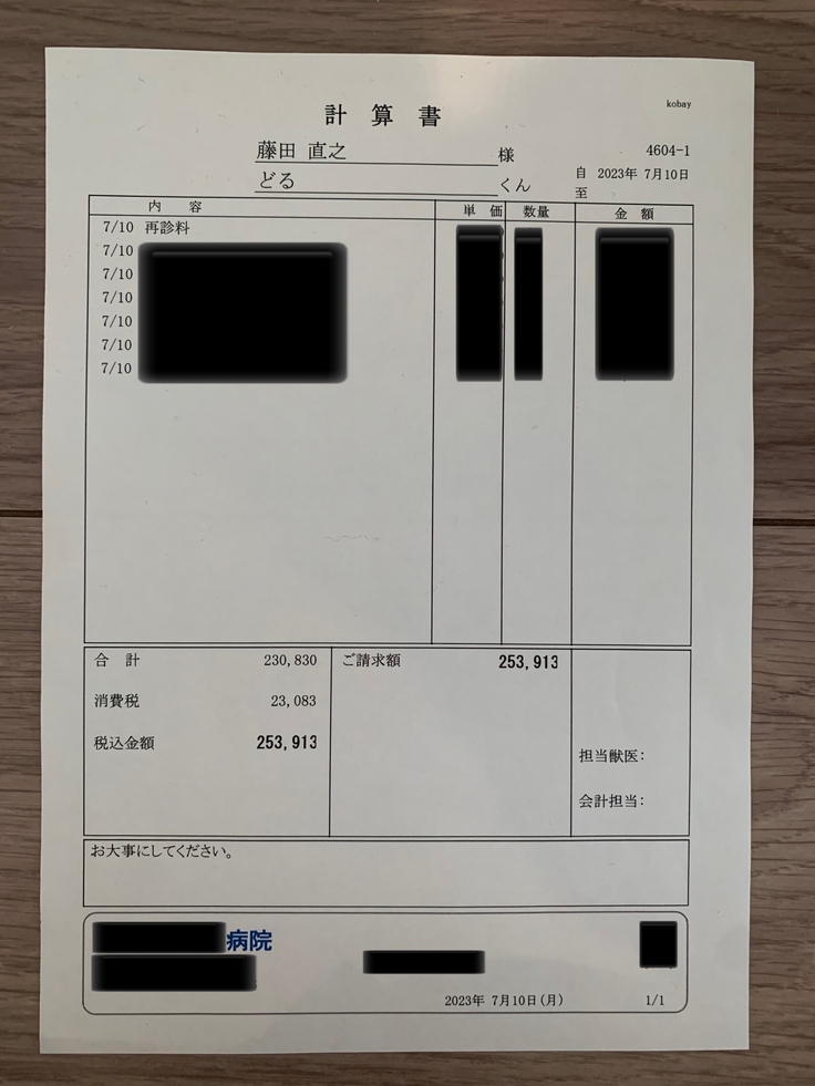 ここまでかかった治療費とクラウドファンディングに成功して頂いた代金の収支をご報告致します。
