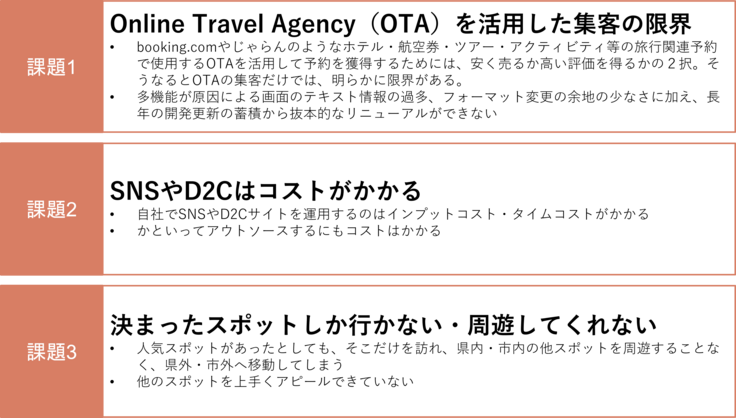 - 公式周遊プランの公開をすることで、周遊してほしい場所を情報として展開できる